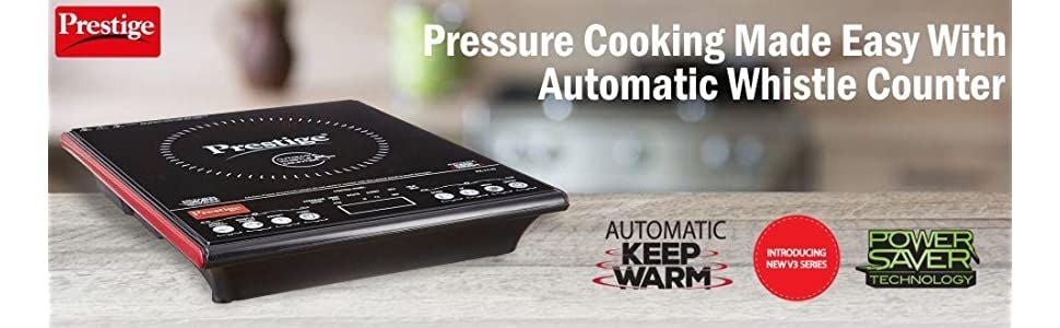 The innovative Prestige Induction Cook-Top offers quick and consistent heating at highest efficiency. Add to this its anti-magnetic wall, soft touch buttons, durability, safety and elegance makes cooking a pleasing and enjoyable experience. The Prestige Induction Cook-Top comes with the unique whistle counter, power saver technology and keep warm function wherein the Induction Cook-Top dynamically monitors the temperature of the vessel and adjusts the power level based on the size (base diameter) of the vessel. The dual heat sensor provided in the Induction Cook-Top automatically senses the temperature of the vessel and prevents over heating thereby saving power. With latest technology and features, this cooktop will be the best addition to your kitchen!