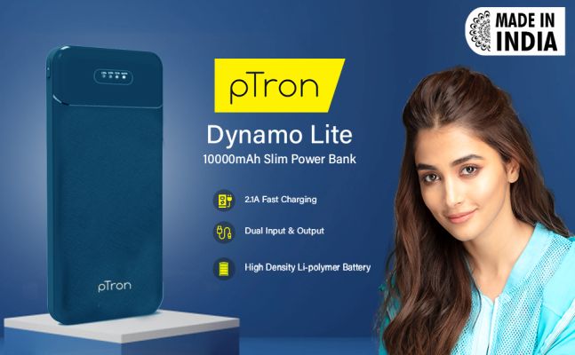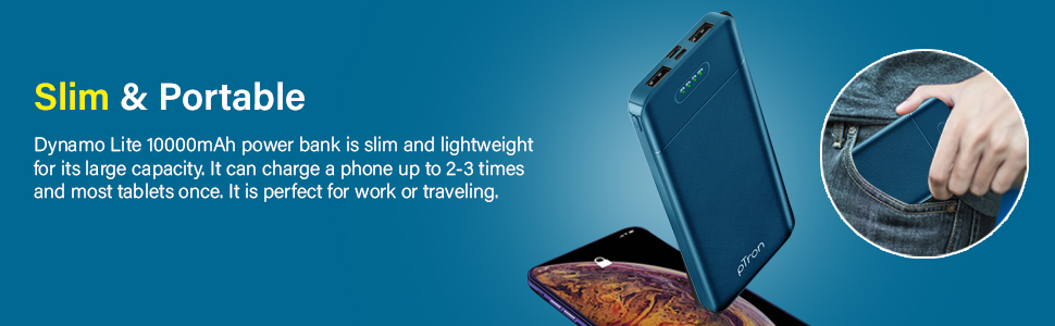 pTron Dynamo Lite 10000 mAh Power Bank, 10 Watt Fast Charging, Blue