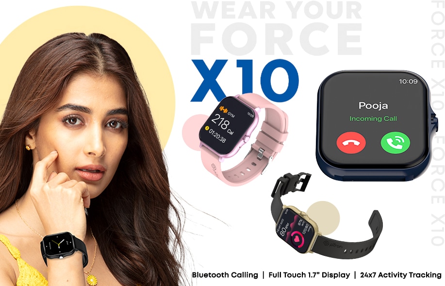 pTron Force X10 Bluetooth Calling Smart Watch with 1-year warranty, (1.7 Inch) Full Touch Display, Built-in Mic for Bluetooth Calling, Up to 5 days Battery Life, BLACK