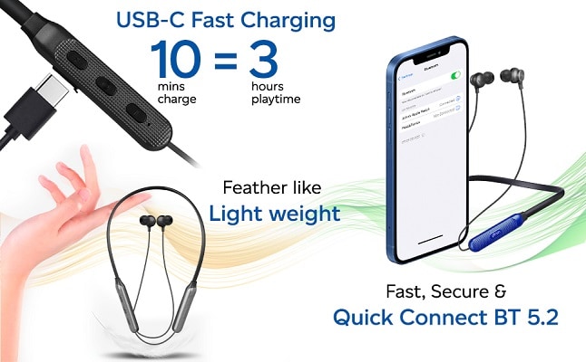 - Bluetooth 5.2 Wireless Neckband with Quick Pairing, Seamless 10mtrs Connectivity, Dual-device Pairing & Wide Compatibility