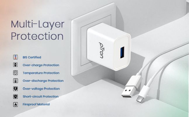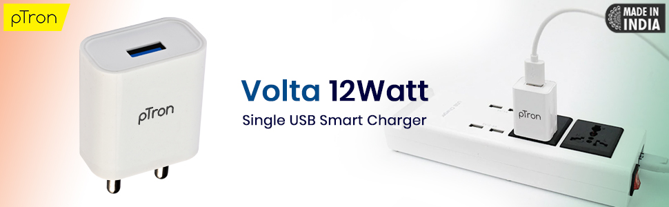 pTron Volta USB charger is essentially a 2.4A (12W) wall adaptor, that lets you charge all your USB-powered devices with a single adaptor. No need to carry multiple chargers without cable.