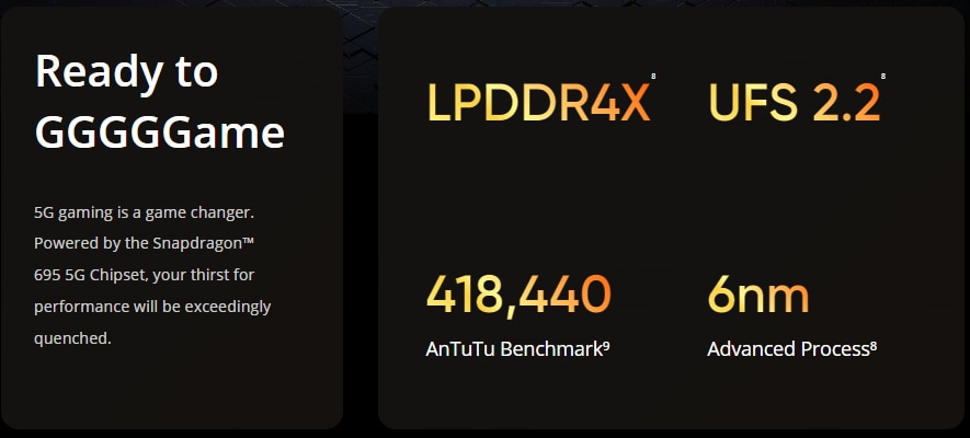 - Qualcomm Snapdragon 695 5G Octa-Core Processor