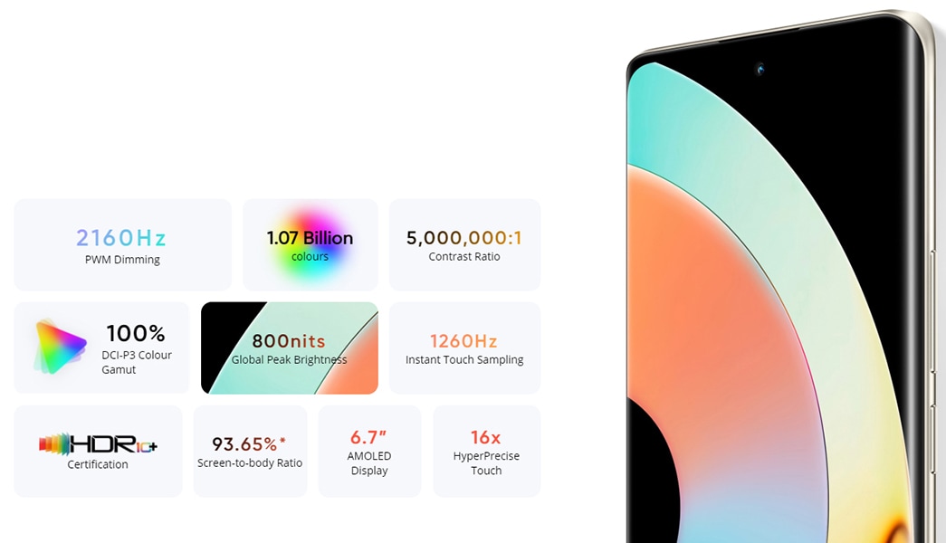 - Display: 17.01 cm (6.7 Inch) Curved AMOLED
