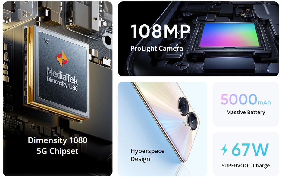 - MediaTek Dimensity 1080 5G Octa-Core Processor