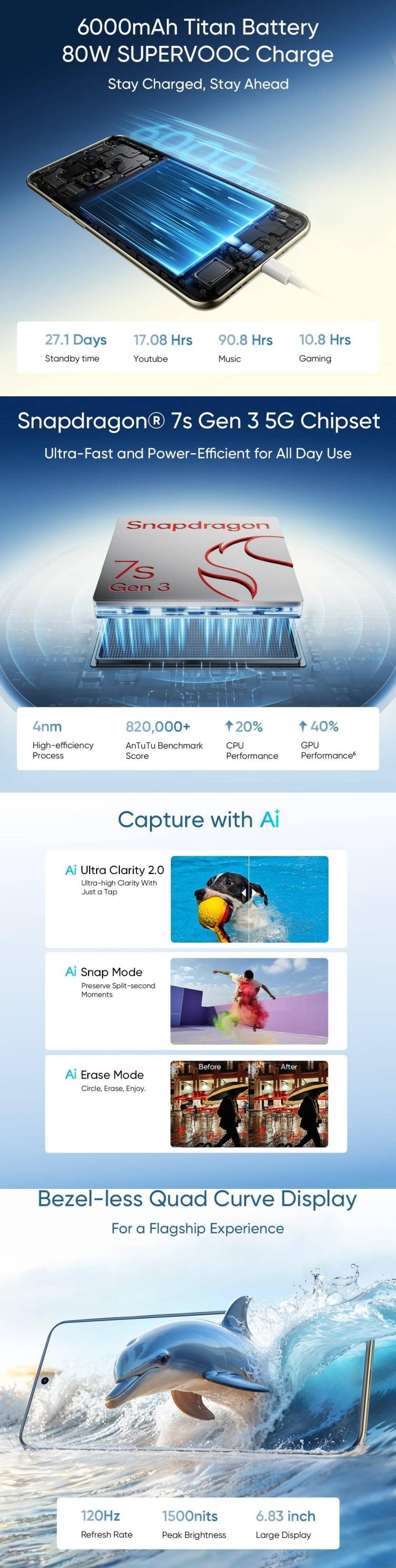 - Display: 17.35 cm (6.83 inch), 2800 x 1272 Resolution, 1.5K Quad-Curve AMOLED