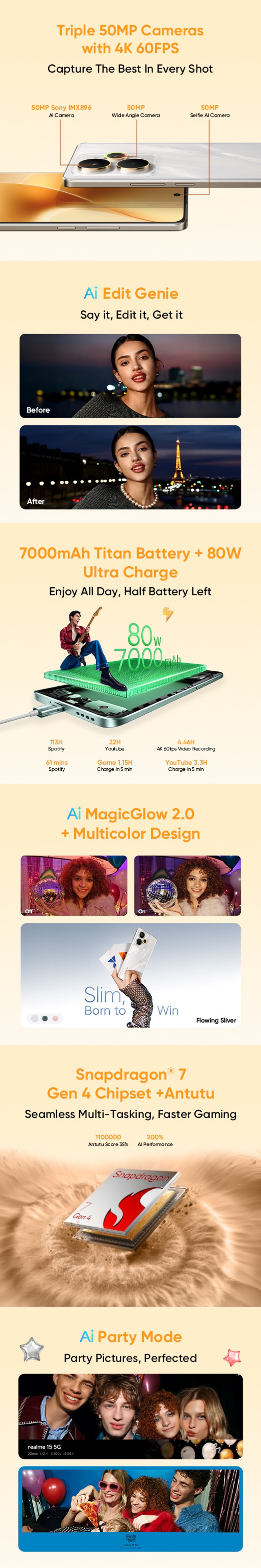 Realme 15 Pro 5G 256 GB, 8 GB RAM, Purple, Mobile Phone