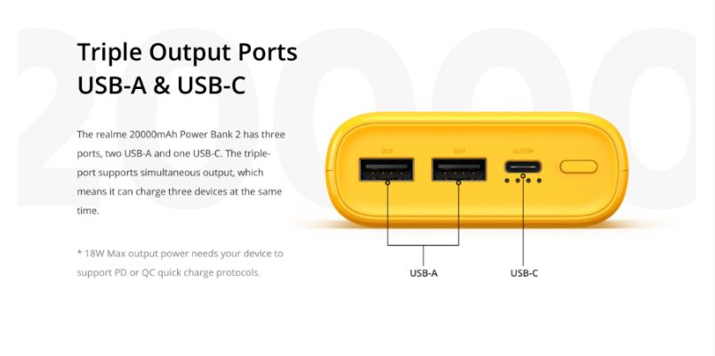 realme 20000 mAh Power Bank 2, Yellow RMP2005