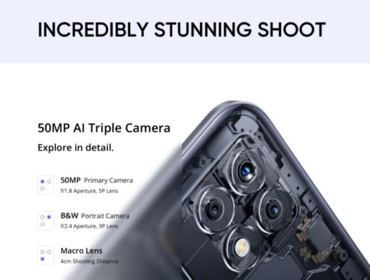 - 50 MP + 2 MP + 2 MP Primary Camera