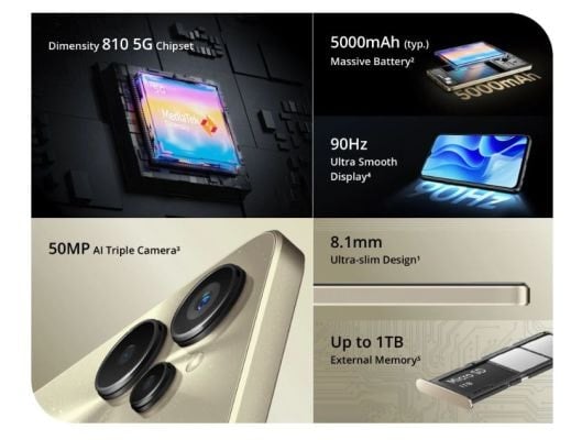 - 50 MP + 2 MP +2 MP Primary Camera