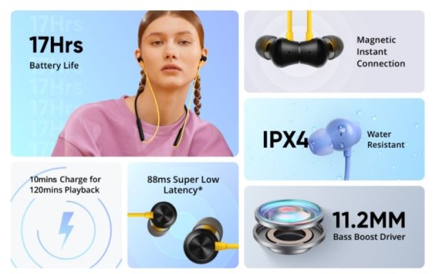 Realme Buds Neo 2 Wireless BT Neckband Earphone with Environment Noise Reduction, 17 hrs playtime, IPX4 Sweat and Water Resistant, Magnetic Instant Connection, Blue