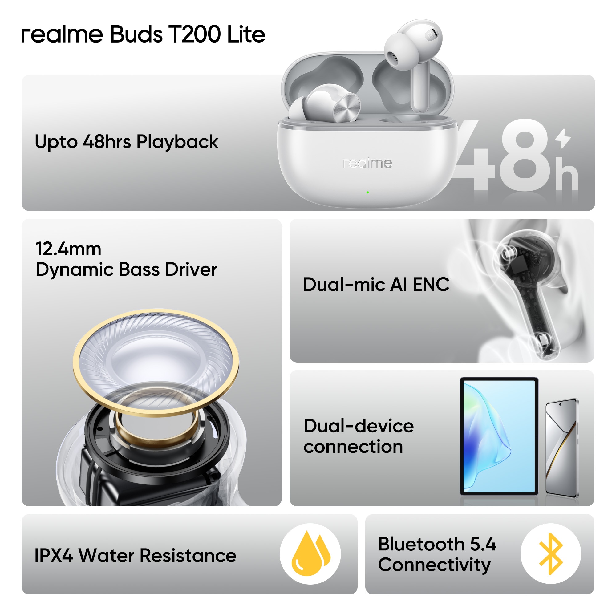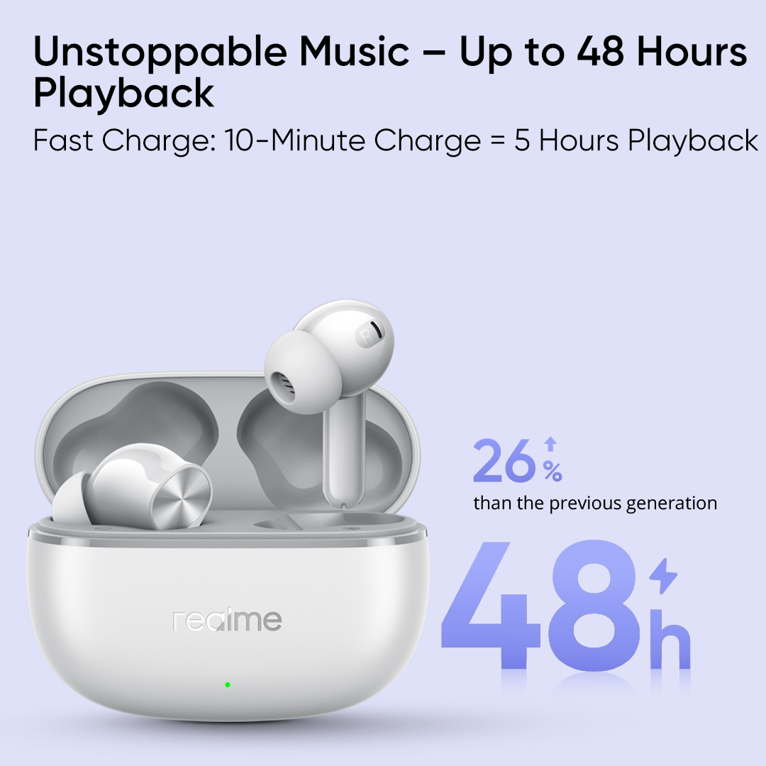 realme Buds T200 Lite Bluetooth in Ear Earbuds, AI ENC for Calls, 48 Hours Total Playback with Fast Charging and Low Latency Gaming TWS, Google Fast Pair IPX 4 Water resistant, with mic (Storm Grey)