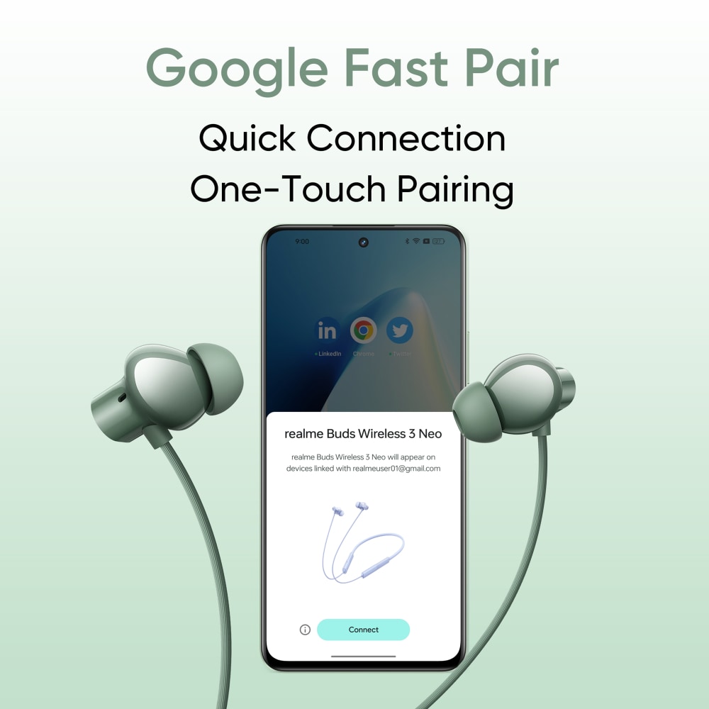 realme Buds wireless 3 Neo Bluetooth Neckband with 13.4 mm Dynamic Bass Boost Driver, upto 32 Hours Playback , Fast Charge, AI ENC, 45ms Ultra Low latency, IP55 Dust & water resistannt, Dual Pairing & Bluetooth v5.4 (Green)