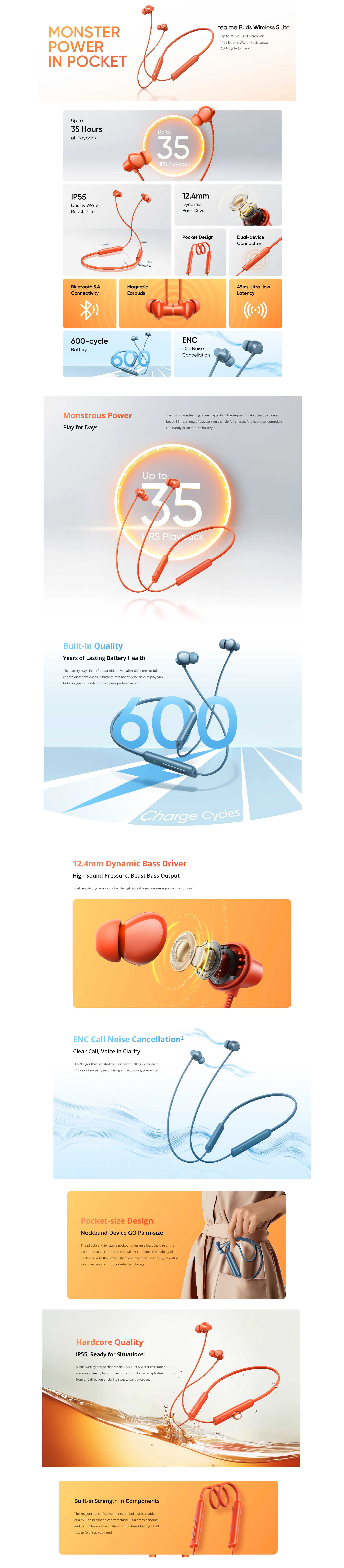 realme Buds Wireless 5 Lite in ear Bluetooth Neckband with 12.4 mm Dynamic Bass Boost Driver, Upto 35 Hours Playback, 45 ms Low Latency, IP55 Dust & Water Resistant, Bluetooth v5.4 (Void Black)