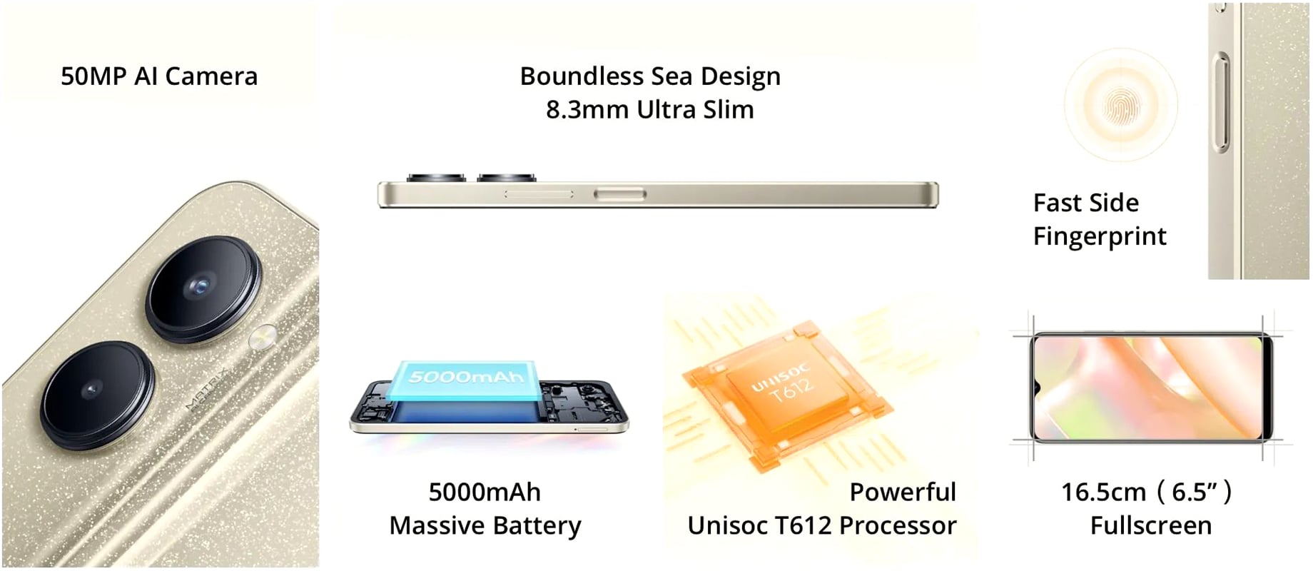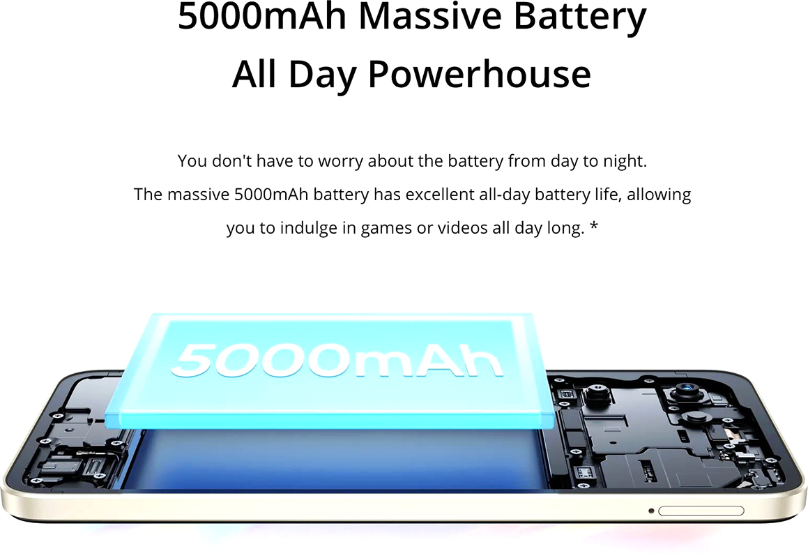 - 50 MP AI Camera, 5000 mAh battery