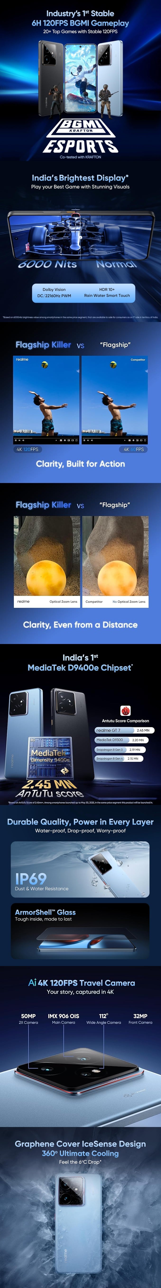 Realme GT 7 5G 256 GB, 12 GB RAM, Black, Mobile Phone