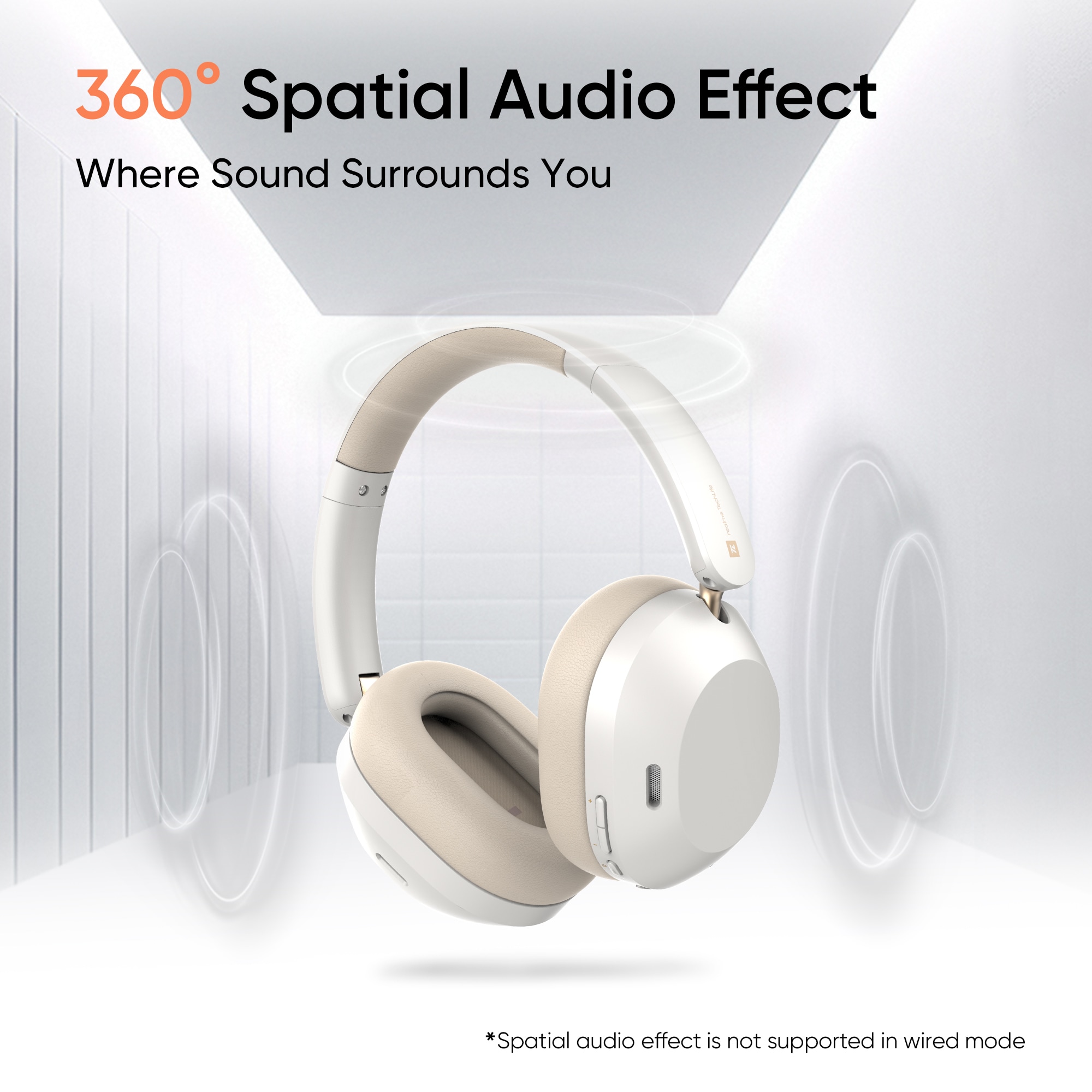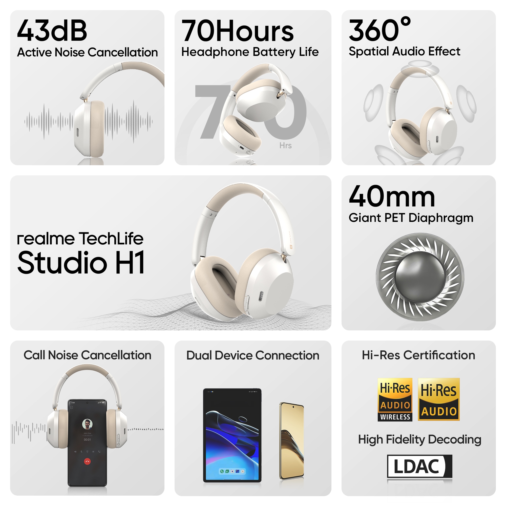 realme TechLife Studio H1 Over the Ear Headphone with 70 Hours Playtime 360 degree Spatial Audio, 40 mm Drivers, 80 ms Superlow Latency, 43 dB Adaptive ANC, White