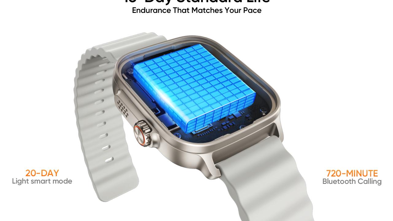- Enjoy up to 16 days of battery life (20 days in Light Mode / 6 days with AOD) and precise navigation powered by independent GPS with 5 GNSS and a built-in compass