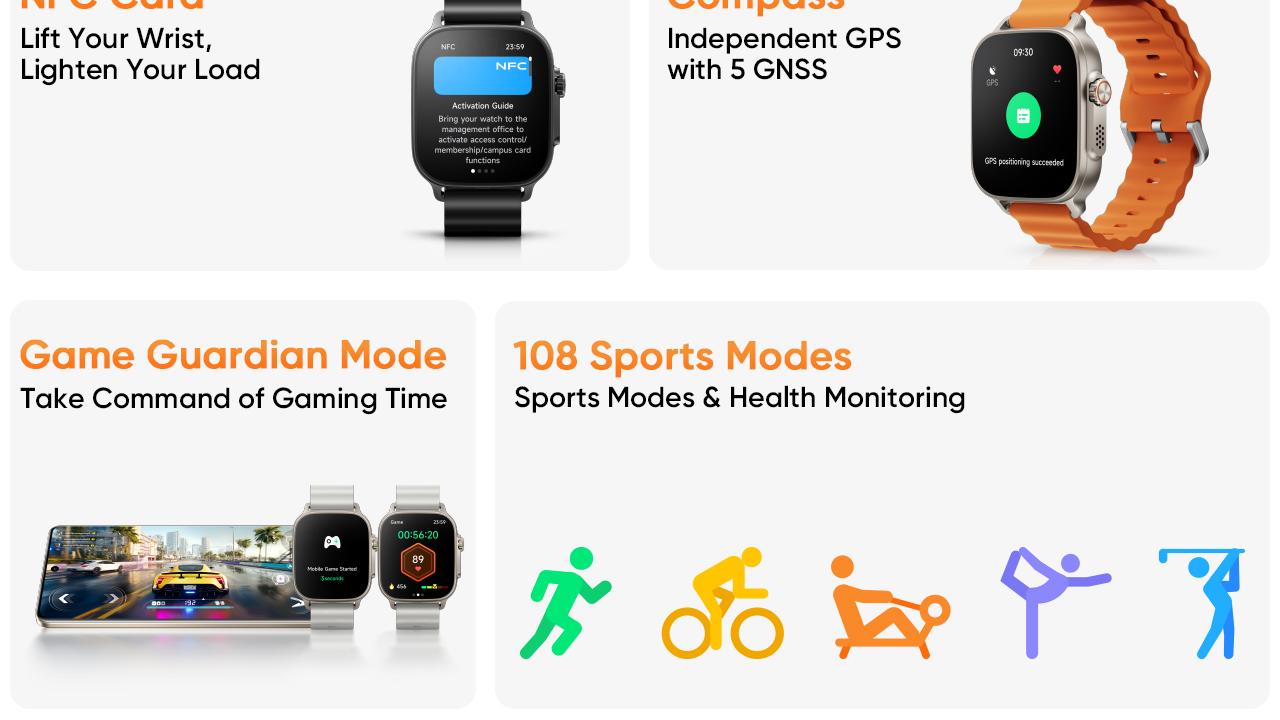 - Experience the new realme Watch 5 with a vibrant 5 cm (1.97 inch) AMOLED display
