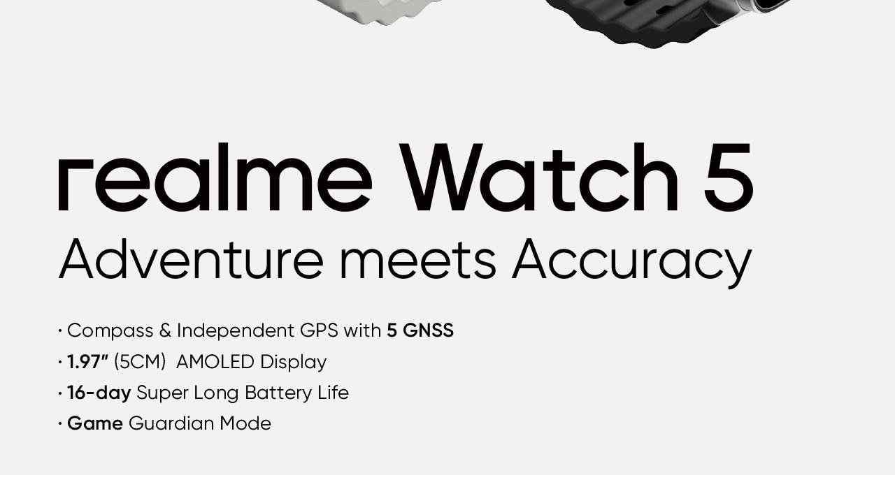 - Experience the new realme Watch 5 with a vibrant 5 cm (1.97 inch) AMOLED display