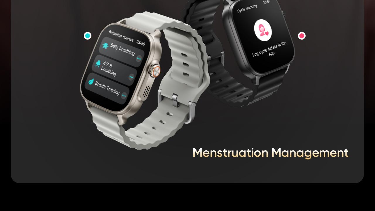 - Monitor your well-being with advanced sports and health features, including breath training, menstruation management, and sleep tracking