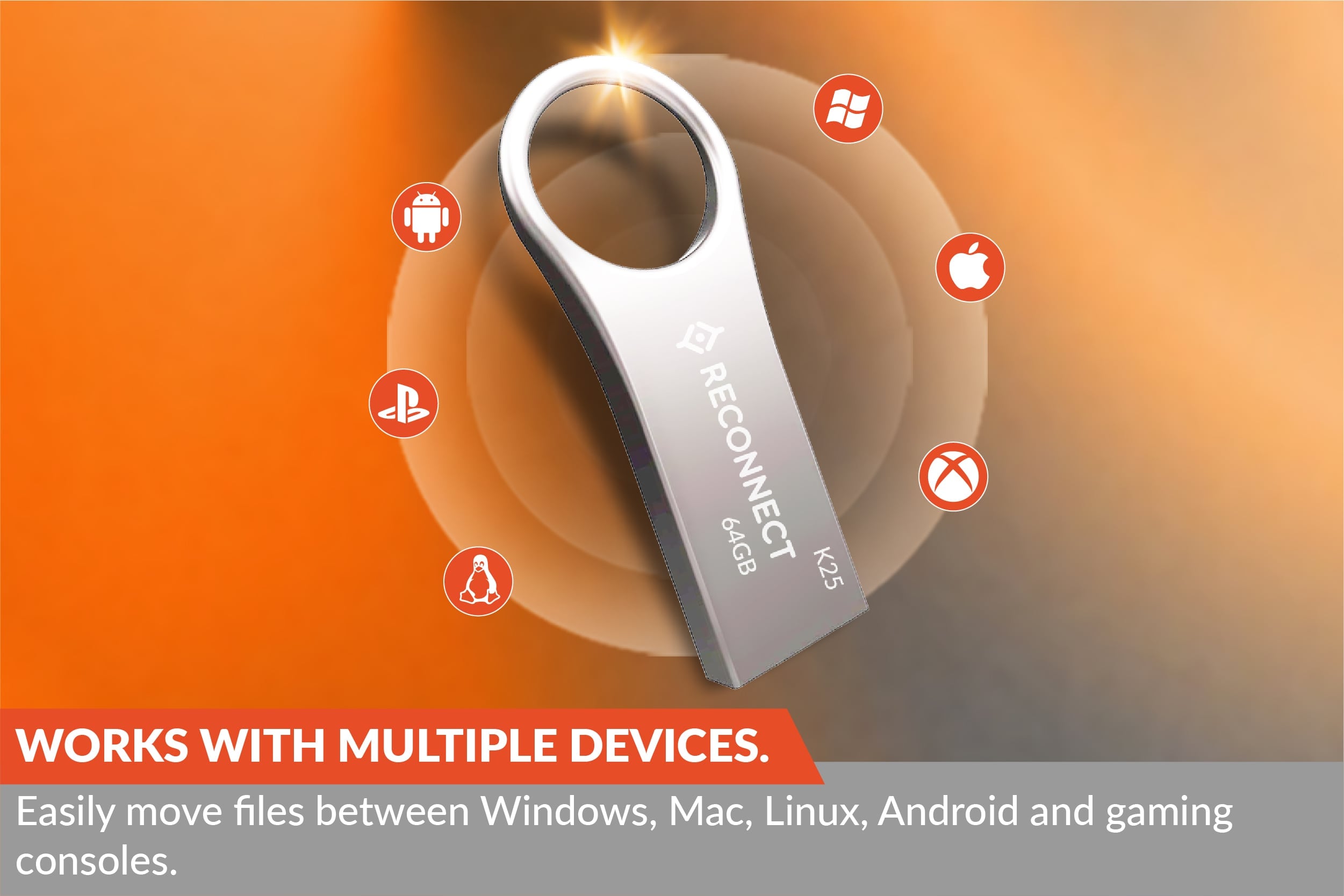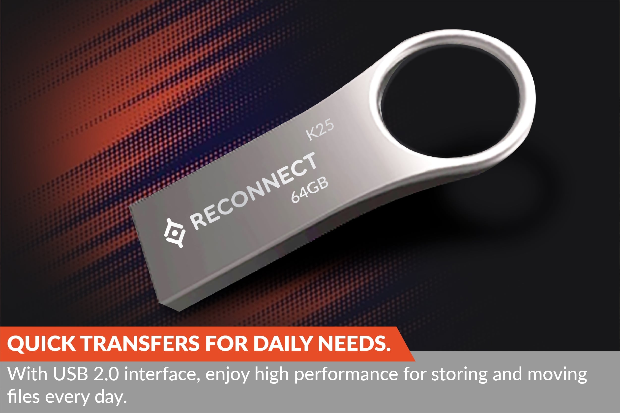 The Reconnect USB 2.0 Flash Drive, Sync-64R, is built for fast, everyday file transfers, with read speeds of over 20 MB/s and write speeds of over 10 MB/s. Smooth, consistent performance for all your daily files.