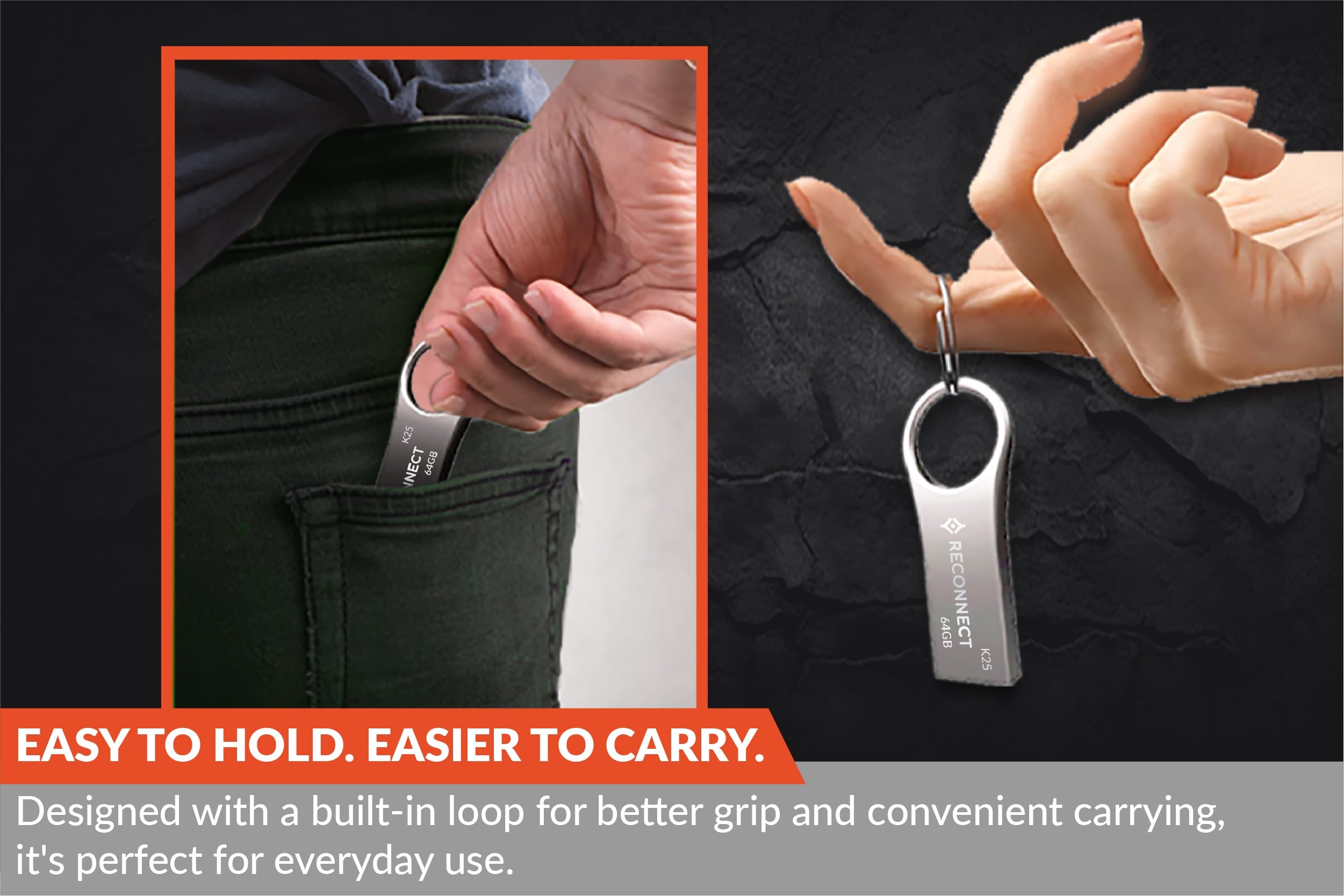 Premium metal body with a built-in carry loop for better grip and on-the-go convenience. Clip it to your keyring and it's always within reach.