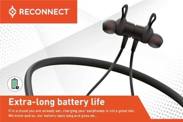 Reconnect Drip Bluetooth Neckband, Up to 16 hrs playtime, Voice Assistant Compatible, Multi Connect Function, Swift Charging, Black