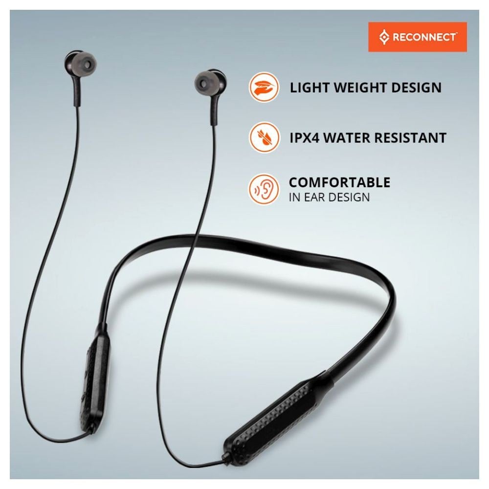 Reconnect Dank Neckband with IPx4, water resistance, 16Hrs Battery, Bluetooth v5.0, Multi point connection (Black) with 1 year warranty