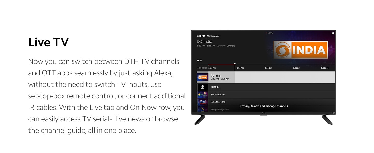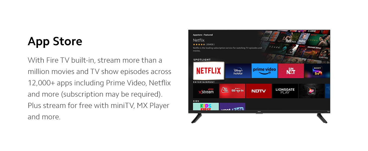 - Supported Apps: Amazon Prime Video, Netflix, Disney+ Hotstar, Youtube