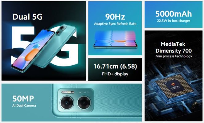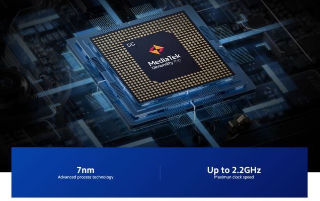 Dimensity 700 octa-core processor operating at up to 2.2GHz clock speed offers superior performance while maintaining lower power consumption thanks to its 7nm process technology