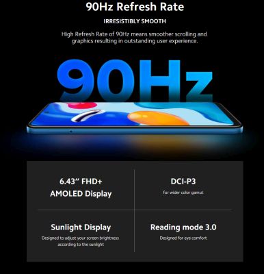 Redmi Note 11S has an 16.33 cm (6.43 inch) AMOLED display with Full HD+ resolution.