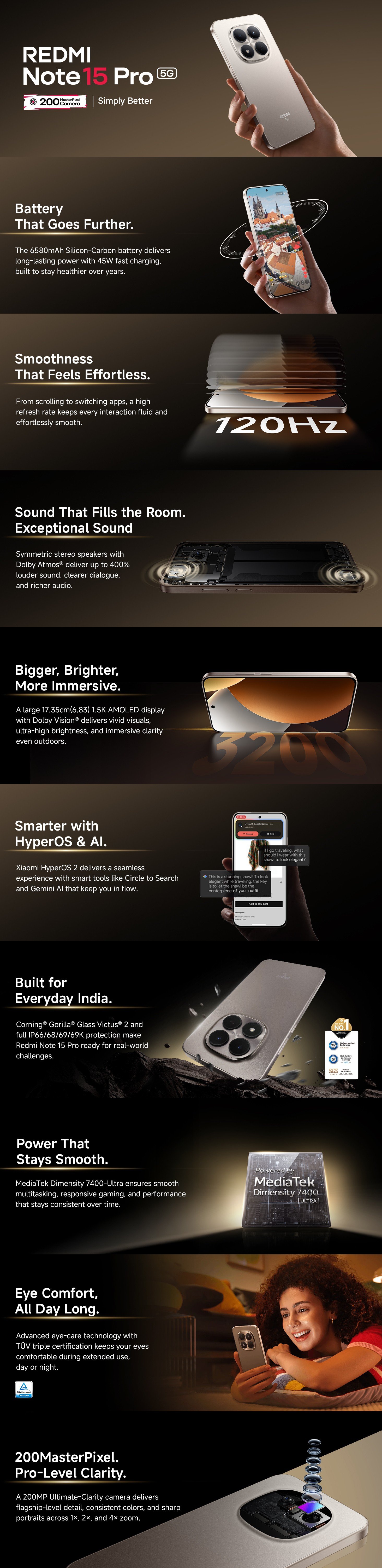 Redmi Note 15 Pro 5G 128 GB, 8 GB RAM, Silver Ash, Mobile Phone