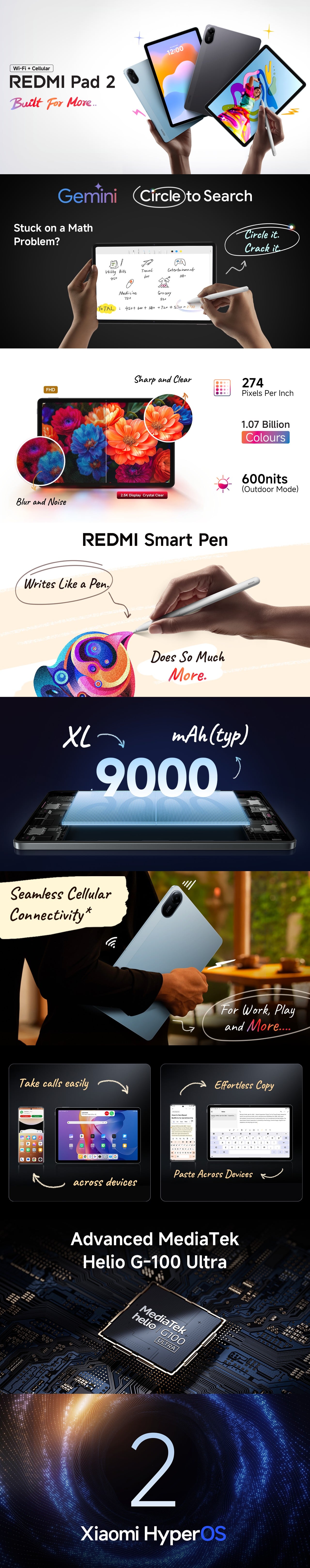 Redmi Pad 2 27.94 cm (11 inch) Wi-Fi + LTE Tablet, 4 GB RAM, 128 GB, Sky Blue, VHU6722IN