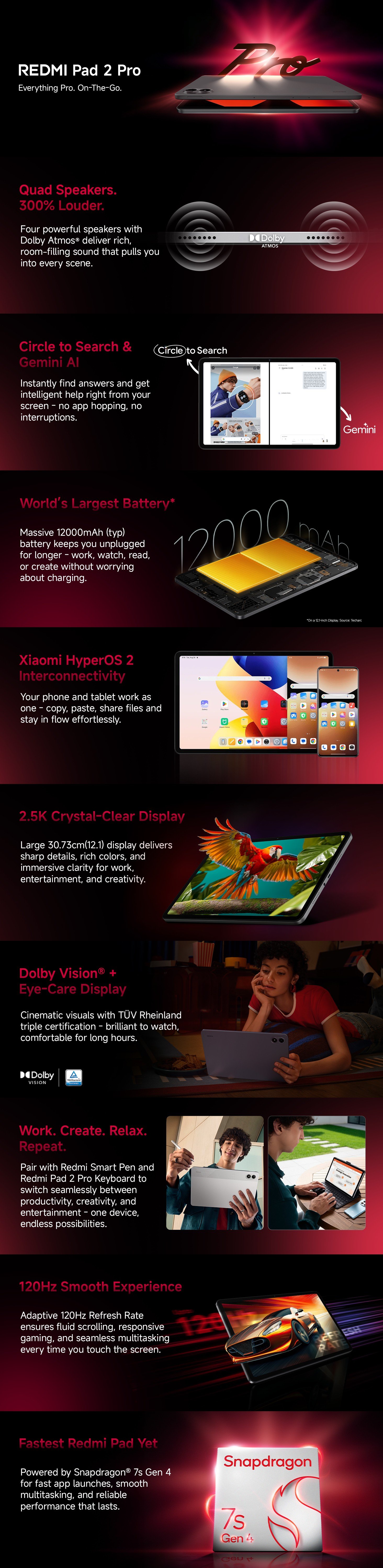 Redmi Pad 2 Pro 30.73 cm (12.1 inch) Wi-Fi + 5G Tablet, 8 GB RAM, 256 GB, Graphite Grey, 71153