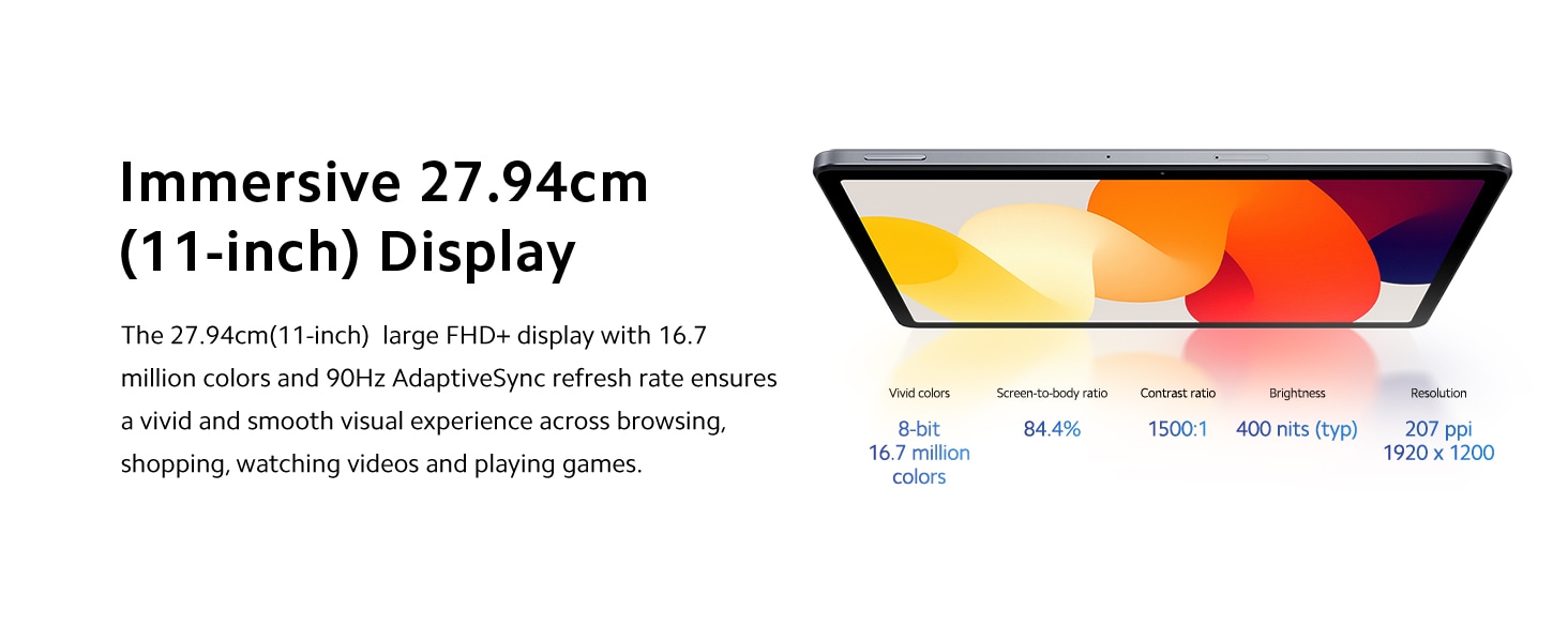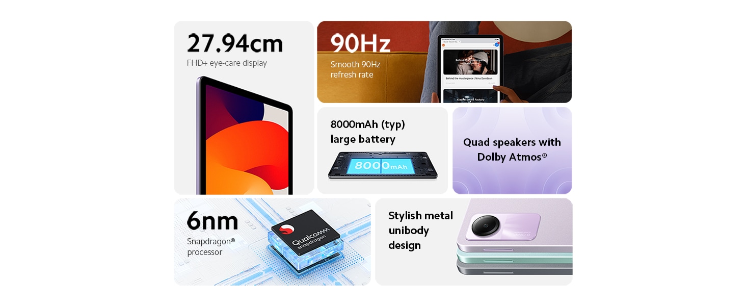 * This Redmi Tablet image is for illustration purpose only. Actual image may vary.