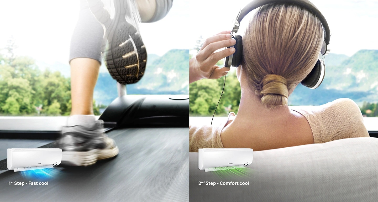 The 2-Step Cooling Mode begins cooling the air fast using its Fast Cool mode. It then automatically changes to Comfort Cool mode to maintain the desired temperature, so don’t have to keep changing the settings.