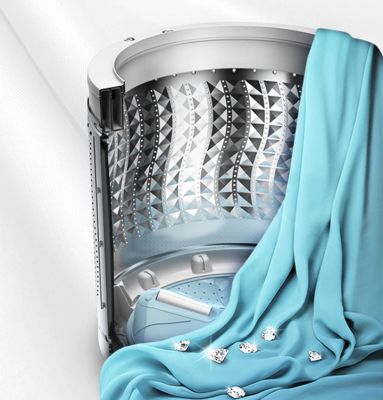 Protect clothes from being damaged.The Diamond Drum’s unique “soft curl” design washes clothes very effectively, while treating them with care.Its smooth, diamond-shaped ridges are gentle on even delicate items. The small water exit holes also prevent fabric from becoming trapped and damaged.