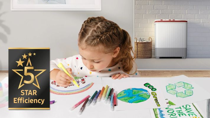 Spend less on bills and protect the planet. The washing machine’s high energy efficiency is certified by the Bureau of Energy Efficiency (BEE) with its highest “5 star” rating. Its low power usage saves you money and also reduces harmful CO2 emissions, so it has less impact on the environment.