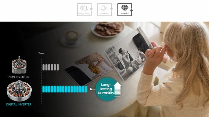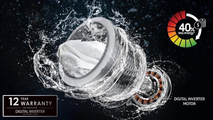 Enjoy greater energy efficiency, less noise and a long-lasting performance. Digital Inverter Technology uses a planetary gear system to quietly amplify the power of the motor by 5 times, but uses up to 40% less energy than a Universal Motor. It provides outstanding durability.