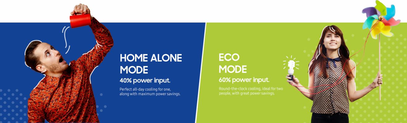 There’s a mode for every mood. Whether you are hosting a big party at your place, working alone, or just chilling with your loved ones, the Samsung Convertible 5 in 1 AC lets you control power usage real time as per your cooling needs.