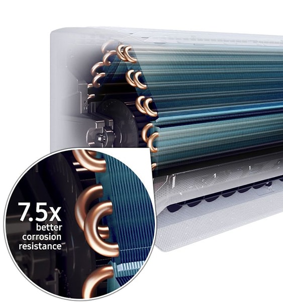 Enjoy a longer-lasting performance and save money. The Heat Exchanger’s coated copper tubes have 7.5x better corrosion resistance, protecting it against harmful environmental conditions, like dust and pollutants. It extends the lifespan, improves reliability and reduces maintenance costs.