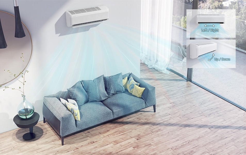Create a comfortable environment with an even temperature in every corner of a room. The 4-way Swing function lets you remotely control the air direction or automatically expels air in every direction. As well as the auto up-down swing function it also has an auto left-right swing function.