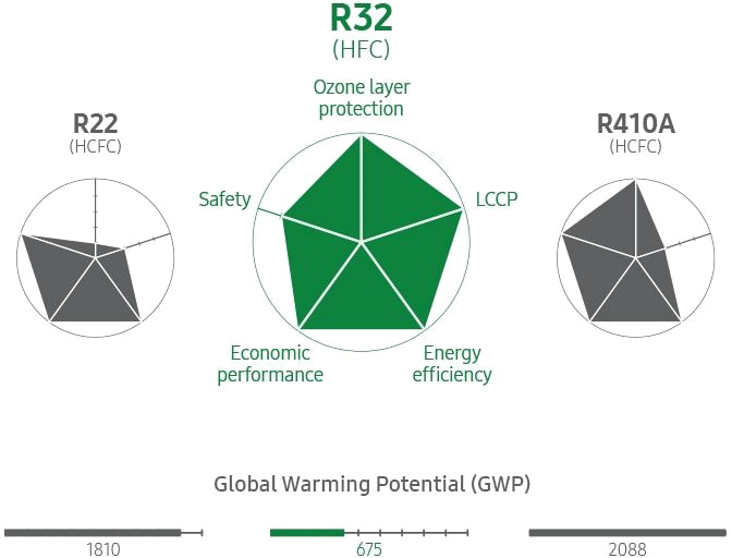Protect the planet by reducing the impact of climate change. The air conditioner uses the next generation R32 refrigerant, which helps conserve the ozone layer and has a low impact on global warming compared to conventional R22 or R410A refrigerants. So it’s much more environmentally friendly.