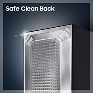 Its Safe Clean Back is a smooth safety cover for its internal vital components that can be easily wiped clean. It also looks neat and provides added durability by protecting them from accidental bumps and knocks.