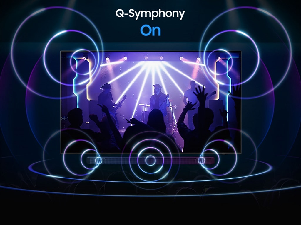 Surround yourself with sound from your TV and Soundbar orchestrated in harmony. Q-Symphony technology allows TV and soundbar speakers to operate simultaneously for a better surround sound effect, without muting the TV speakers.