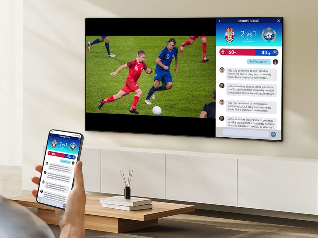 Watch what's on TV and your mobile on the same screen at the same time. Whether it's live stats for sports or cheat videos for games, simply connect your phone and multi-screen like never before. You can also enjoy optimized multi-tasking and watch content simultaneously.
