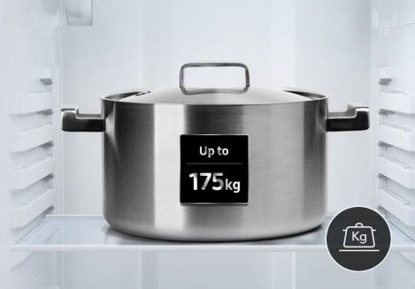 Made using high-quality toughened glass, this refrigerator's shelves can effortlessly and safely withstand a weight of up to 175 kg.
