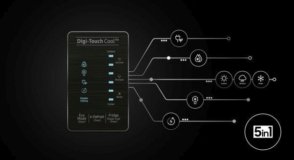 Offering a five-in-one mode, including Eco mode, Temperature Control, e-Defrost, Power Cool, and Black-out Notification, this refrigerator ensures hassle-free operation.