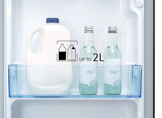 A Deep Door Guard can safely store larger bottles, bulky cartons of milk and juice and more beverage items without wasting space. It can fit in three 2 L bottles and a 1 L in the door at the same time.