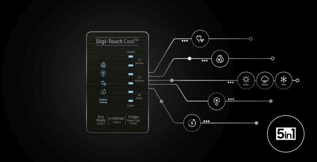 Owing to its five-in-one mode, including Eco mode, e-Defrost, Power Cool, Temperature Control, and Black-out Notification, this refrigerator offers ease of operation.
